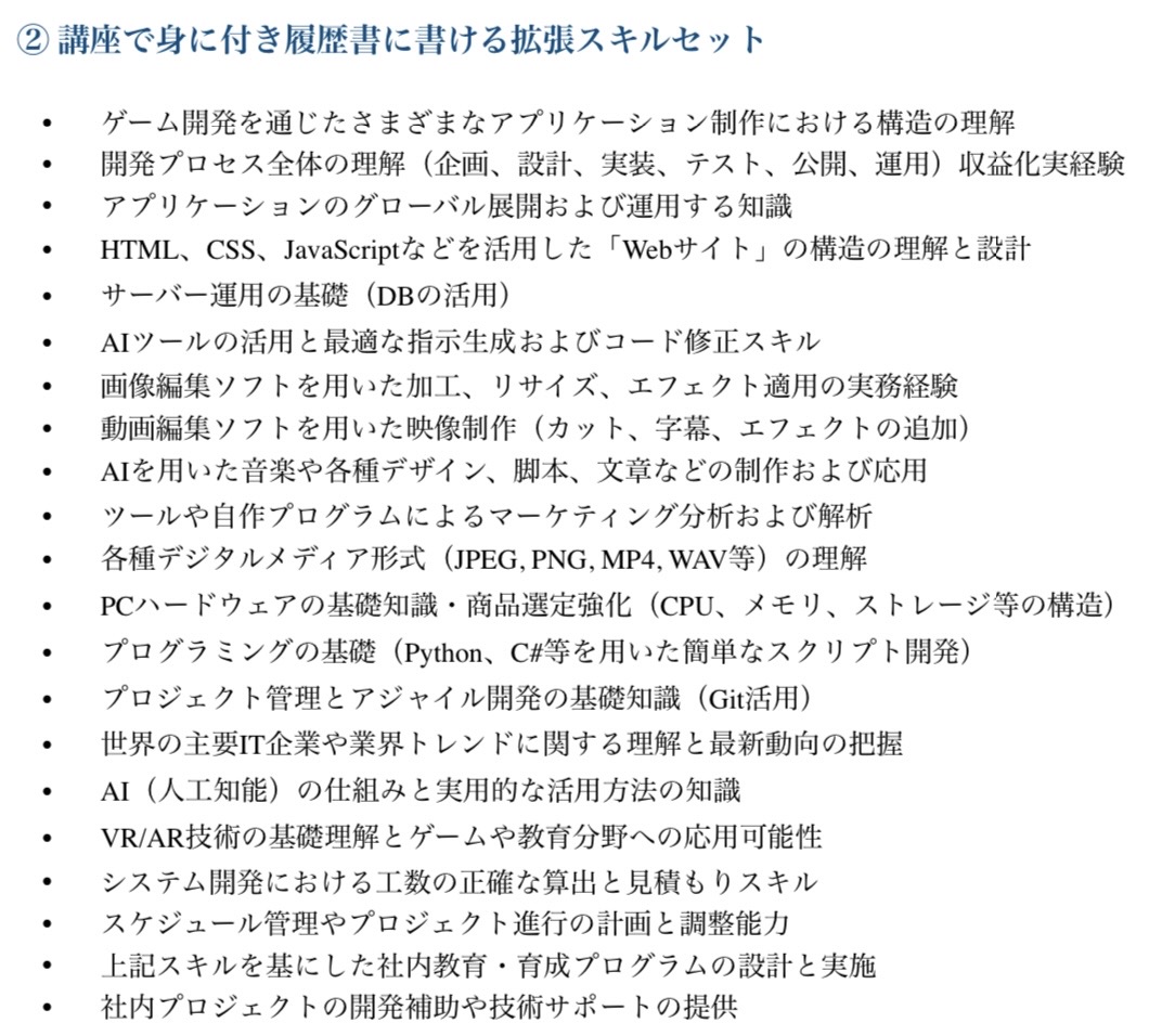 このコースは、単なるスキル習得に留まらず、 「技術を応用して社会で活躍する力」 を徹底的に磨くことを目的としています。初心者でも安心して学べる内容から、実務で即戦力となるスキルまで幅広くカバーしています。